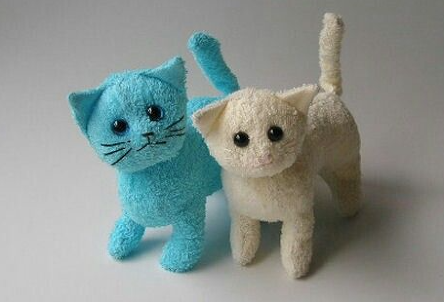 Convierte tus toallas en adorables muñecos de tela. Solo necesitas cortar en la forma que quieras (ositos, estrellas, corazones), coser los bordes dejando un espacio para rellenar y agregar detalles con botones o telas de colores.